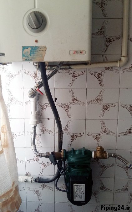 بدلیل عدم مشخص بودن مکان ورودی آب واحد ساختمان، وجود فلکه ورودی در پشت بام و کمبود فشار آب گرم، پمپ مورد نظر در ورودی آبگرمکن نصب شده که باعث برطرف شدن مشکل فشار آب گرم این واحد ساختمانی گردید.