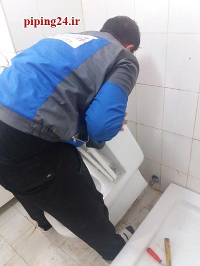 مرحله پایانی کار تمیز کردن سیفون روشویی بود. برای این کار سیفون باز و به خوبی شسته شد و دوباره در جای خود نصب شد. کفشور نیز بررسی و با مواد باز کننده فاضلاب تمیز شد.