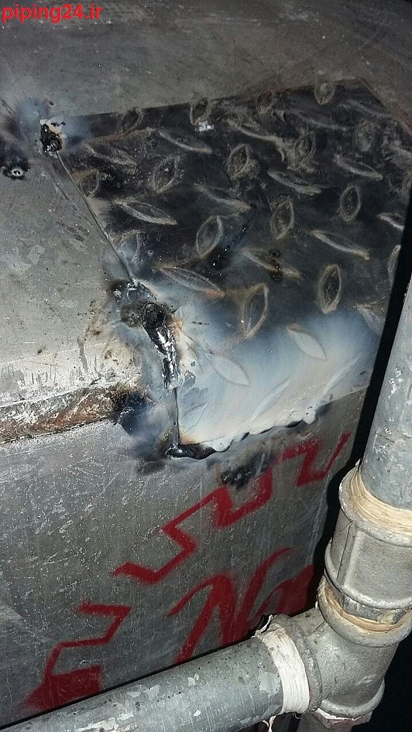 سپس با درجه مناسب جوشکاری انجام و به خوبی منبع آب بندی و مشکل بر طرف شد.
