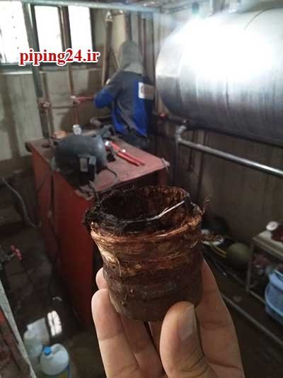 اما بعد از باز کردن شیر فلکه ها با استفاده از برشکاری مشخص شد که قسمت سردنده های شیرها به دلیل بالا بودن میزان رسوب کاملا پوسیده شده بودند.