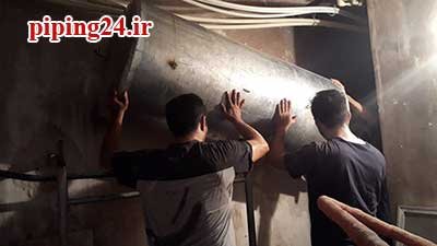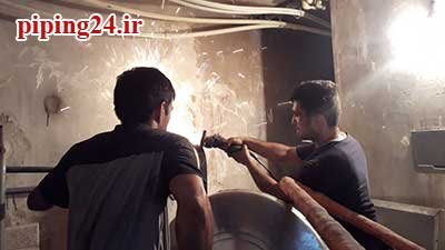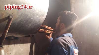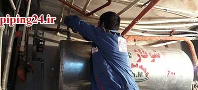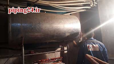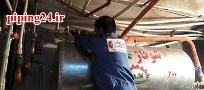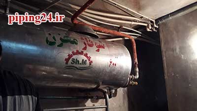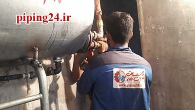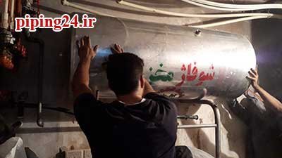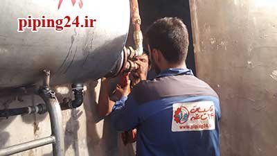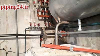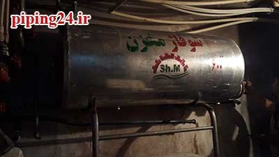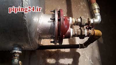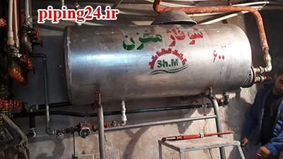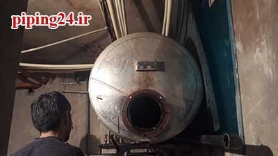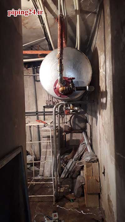 در نهایت بعد از قرار دادن منبع در محل نصب خود اتصالات آن به سیستم لوله کشی آب موتورخانه توسط پیچ و ماسوله انجام شد.